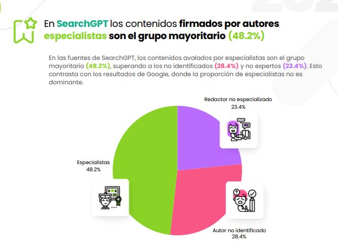 Este estudio confirma lo que muchos ya intuíamos: el contenido firmado por especialistas va ganando peso frente al contenido genérico o anónimo, tanto en buscadores tradicionales como en motores conversacionales como SearchGPT.